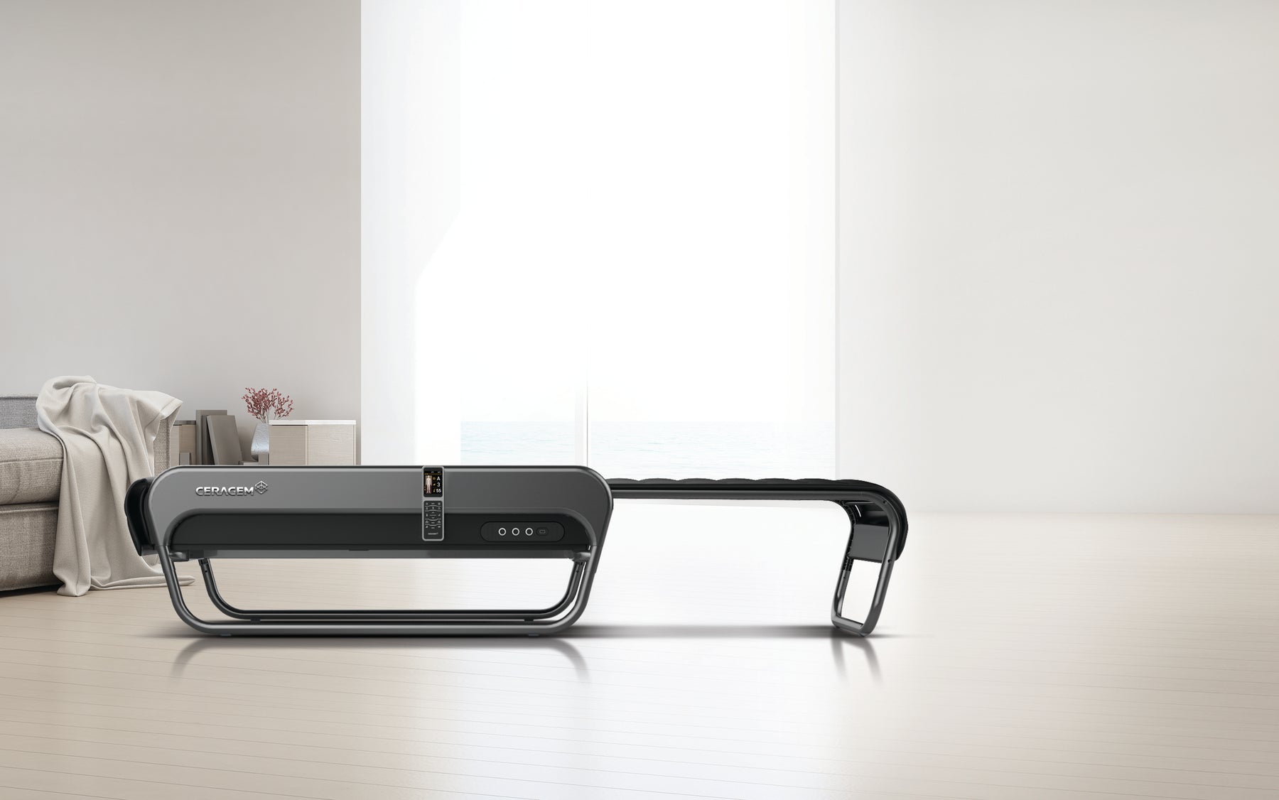 The V4's innovative "slide-away" function transforms from a full-sized massage bed to a discreet heated ottoman or compact couch. Its sleek and sophisticated design makes it a stylish addition to any room in your home—blending seamlessly into living spaces, home spas, studios, or wellness rooms.